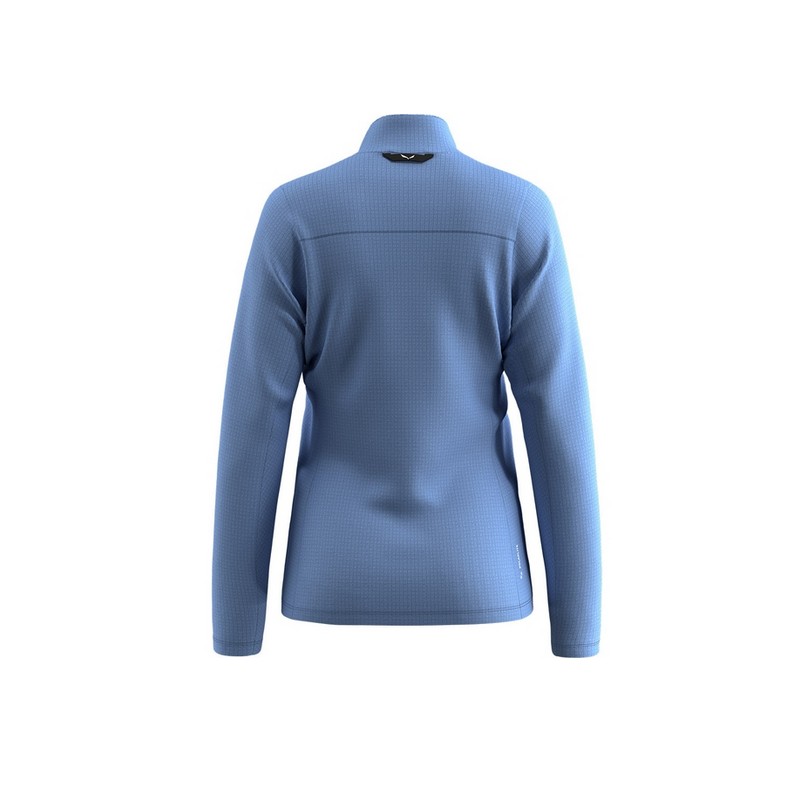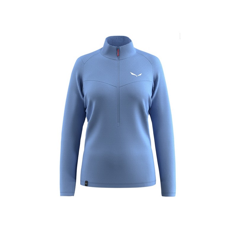 La Forro polar Salewa Puez Cammino con media cremallera se pone rápidamente, mientras que el cuello alto suave y los puños y bajos elásticos protegen contra el viento y el frío.