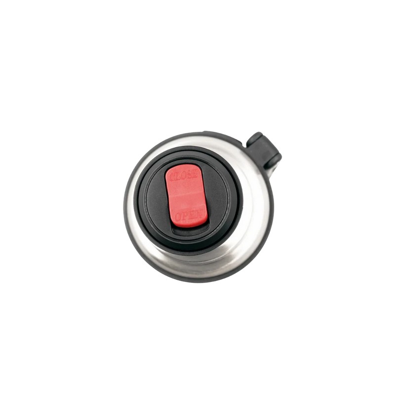 Termo para líquidos con asa y doble pared de acero inoxidable, que garantiza total seguridad alimentaria y mantiene bebidas 24 horas frías y 16 horas calientes.