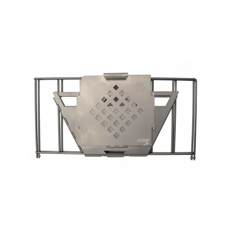 La parrilla Fire Box Grill de Vargo en INOX cuenta con una rejilla abatible, un sistema de paneles para una instalación fácil y embalaje plegable hasta quedar plano. Sólo hay que levantar la rejilla y añadir el carbon o leña ligera.