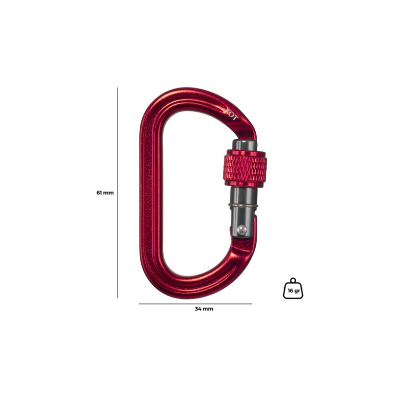 Mosquetón auxiliar simétrico con rosca para un transporte seguro de equipamiento auxiliar. No certificado para escalada.