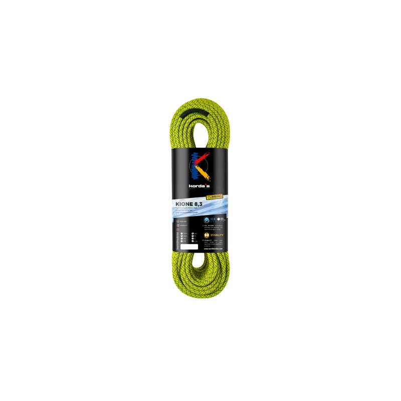 Kione Ice Cuerda dinámica doble, diseñada específicamente para la práctica del alpinismo invernal. Es extremadamente ligera, de tacto agradable y muy manejable.
