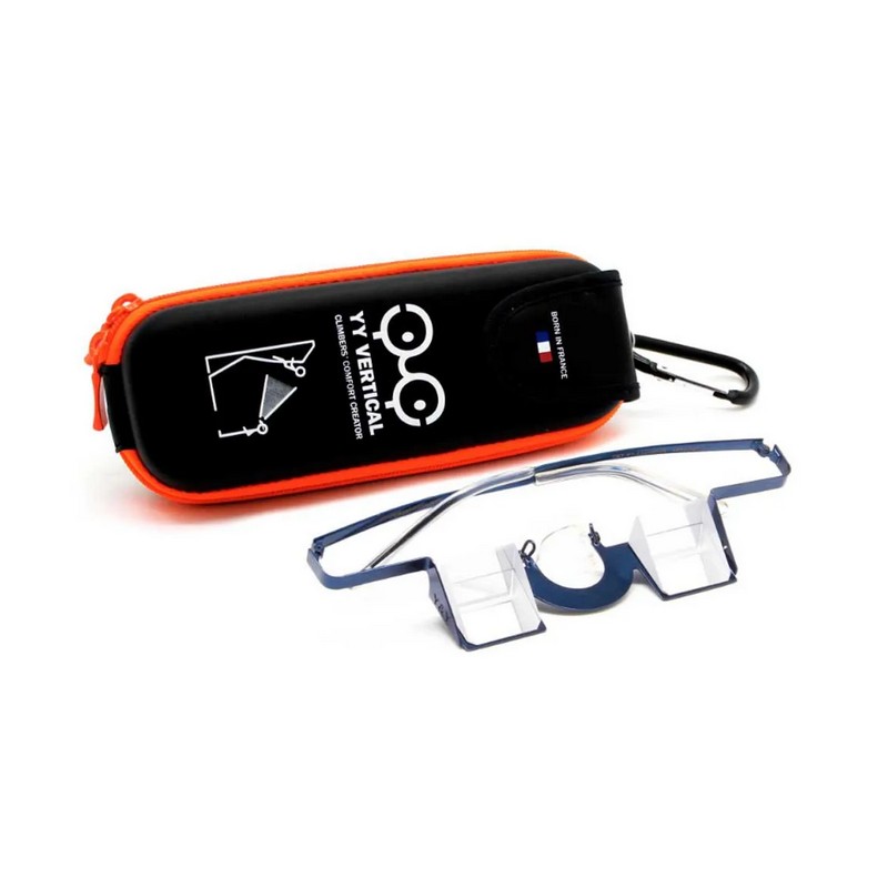 Gafas con prismas que permiten asegurar al compañero(a) sin levantar la cabeza mientras está escalando. Con Y&Y, se asegura con más concentración y seguridad: siempre se ve al escalador y no es necesario descansar por demasiadas tensiones en el cuello.
